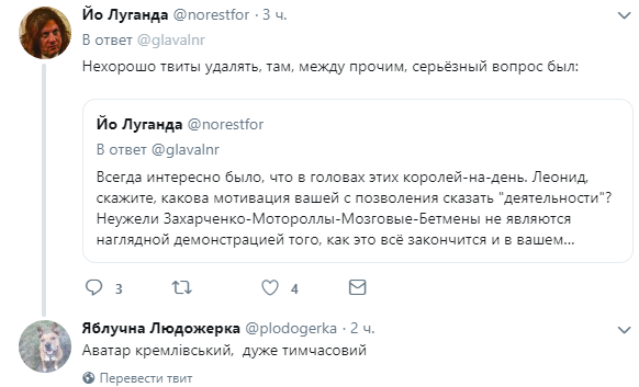 Отметим, что в комментариях у Пасечника к этому часу отметилось всего несколько сторонников "русского мира", остальные же твиты в его адрес совсем не лестные. При этом Пасечник активно удаляет неугодные сообщения.