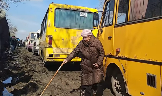 "Такой длинной очереди я ещё не видел! Более тысячи - однозначно)) Туалеты, автобусная остановка синего цвета (указал на видео) и другие ориентиры напоминают мираж и где-то далеко впереди виднеются на горизонте! Очередь расположилась на левой обочине. Старики с трудом переходят по грязи и лужам, переступая колею, которая чётко отпечаталась от колёс автобусов. Вдоль всей "сетки" - горы мусора!!! (Это нам Омерика хочет свалку радиоактивных отходов устроить!)" - иронизирует Светлов.