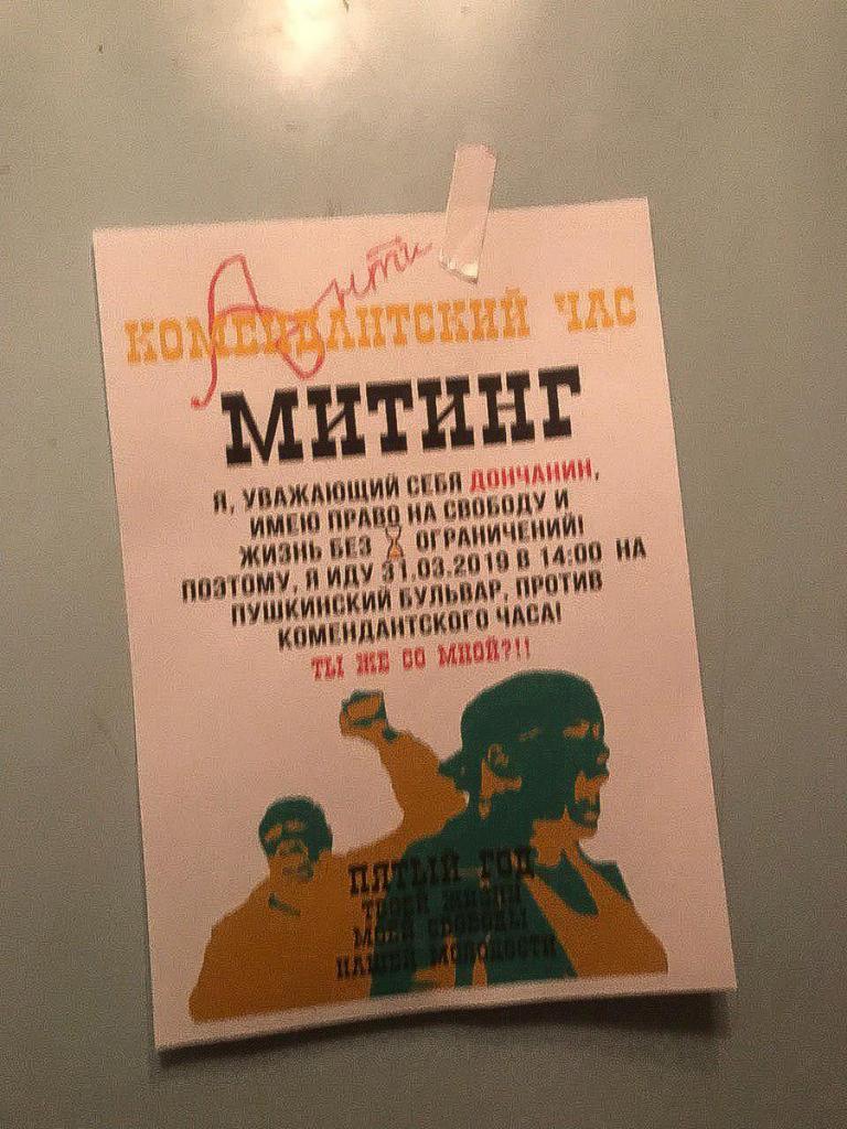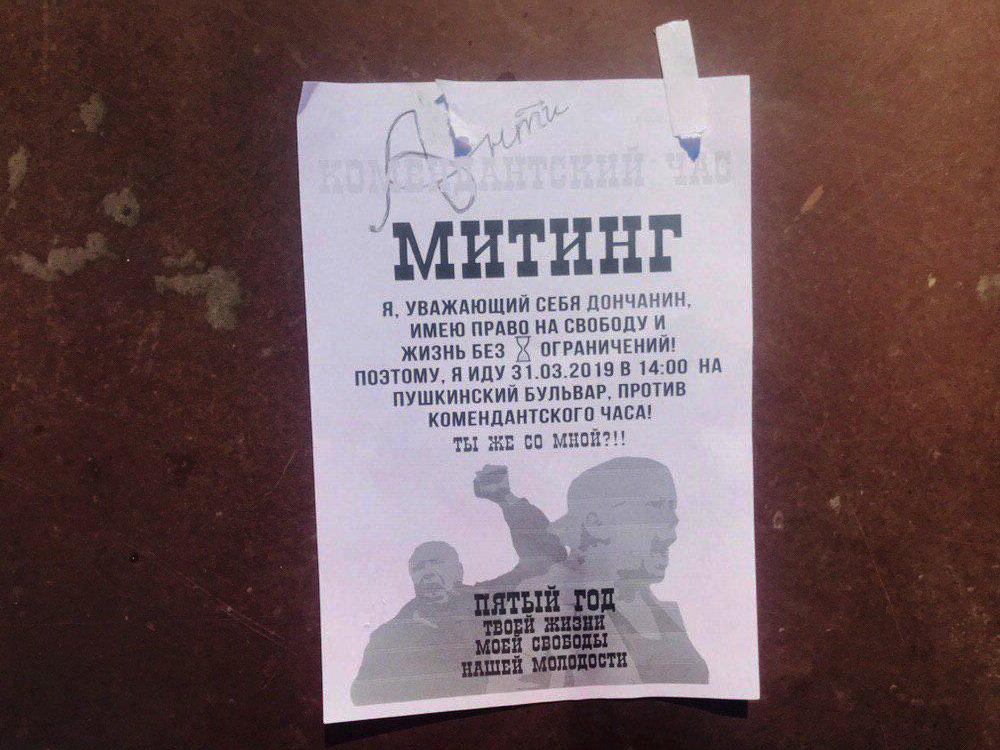 В оккупированном Донецке появились листовки с призывами выйти на митинг против комендантского часа. Они были расклеены по многим подъездам.
