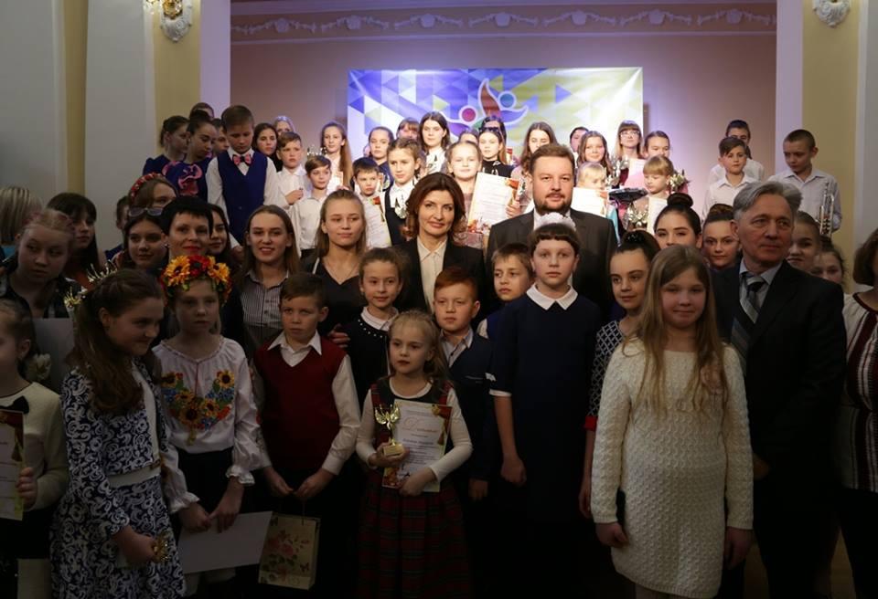 В Северодонецке Марина Порошенко посетила Луганский областной академический украинский музыкально-драматический театр и наградила юных лауреатов областных конкурсов художественного творчества