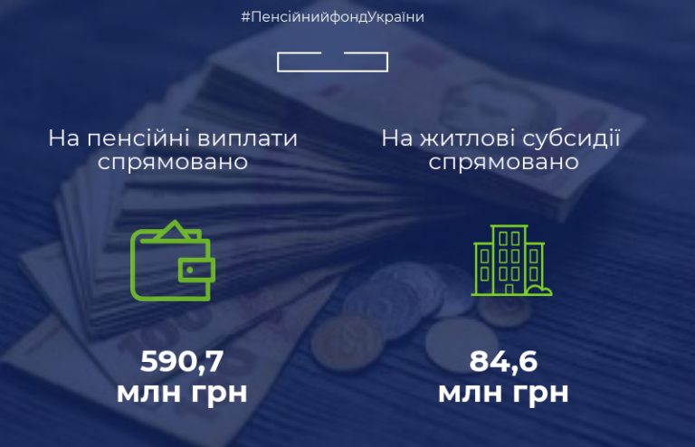 Сообщается, что на пенсионные выплаты направлено первые 590,7 миллионов гривен, а на монетизированые субсидии – 84,6 миллионов гривен.