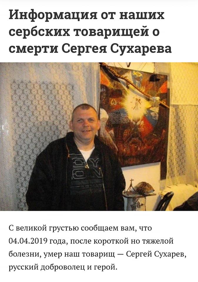 Также стало известно, что 4 апреля умер наемник из Сербии Сухарев Сергей. Он скончался от болезни.