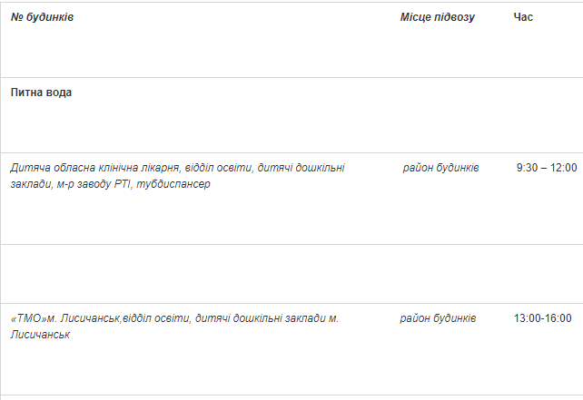 Ранее был опубликован график подвоза воды в южной части Лисичанска.