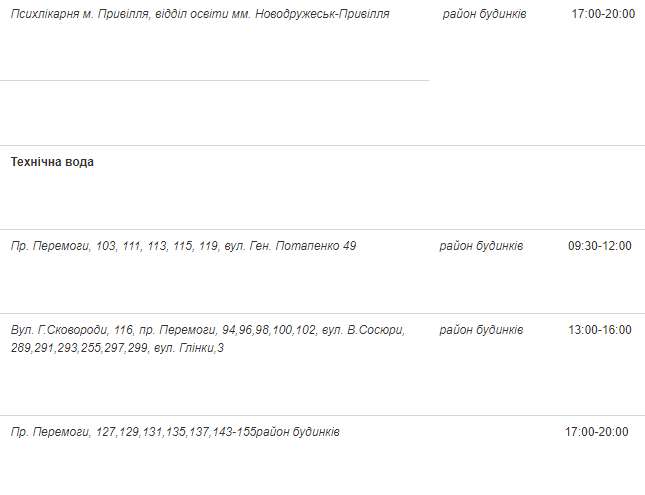Сообщается, что вода будет подвозиться спецтранспортом МЧС. График будет обновляться с учетом отсутствующих районов.