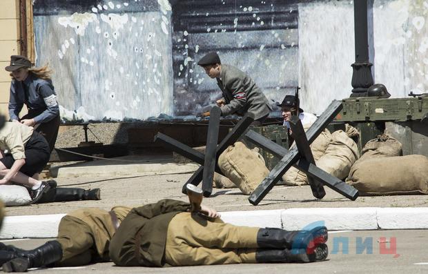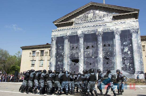 Здание Института культуры и искусств (ИКИ) Луганского национального университета (ЛНУ) имени Тараса Шевченко было задекорировано под Рейхстаг, рядом установлен макет немецкого танка. Реконструкторы устроили условный "подрыв" танка специально обученной собакой, затем был реконструирован ожесточенный бой советских солдат с немецко-фашистскими захватчиками, после чего на крыше "Рейстага" водрузили флаг.