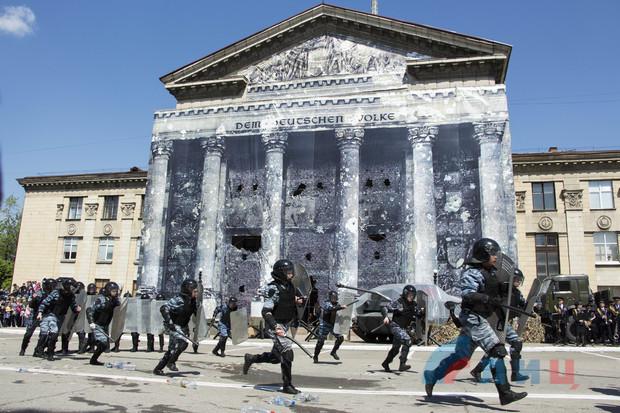 В оккупированном Луганске местное "МВД" устроило реконструкцию штурма Рейхстага и событий на Майдане в Киеве.