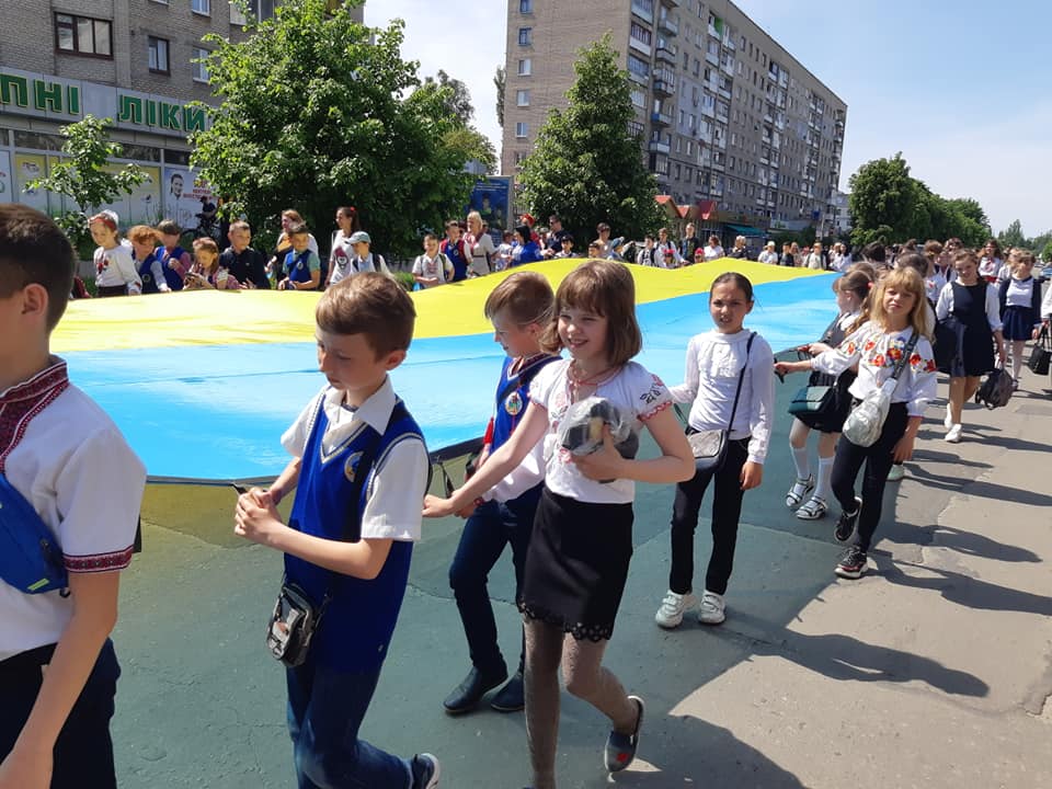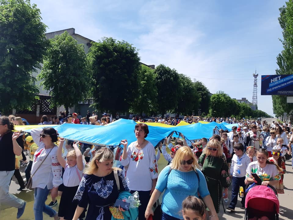 В мероприятии участвовали ученики лисичанских школ, активисты и простые жители города, любящие Украину и ее традиции. Участники шествия пронесли по проспекту огромный сине-желтый флаг.