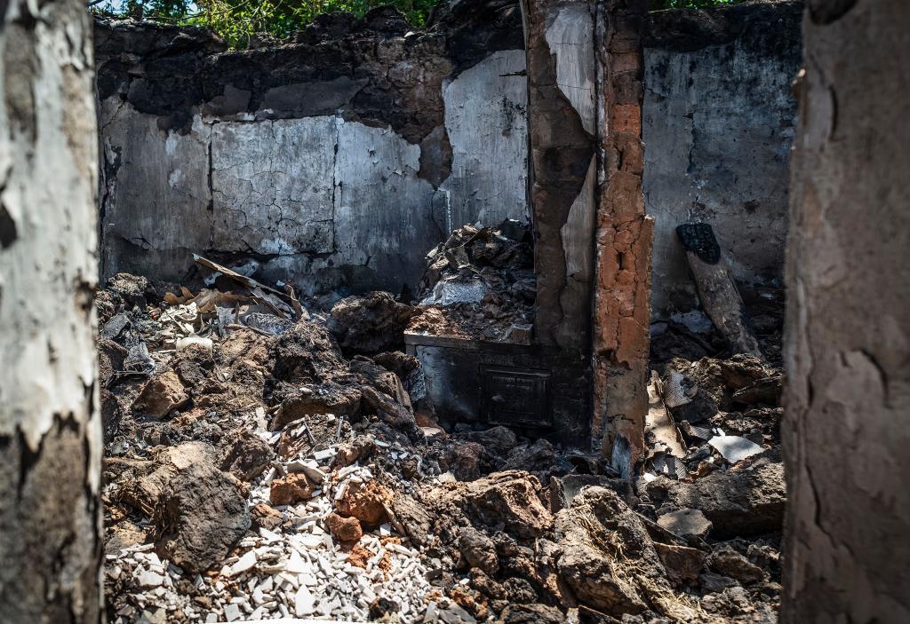 "Последствия деятельности "братского" народа. От обстрела оккупантами поселка Верхнеторецкое загорелся и полностью выгорел жилой дом. Хозяева дома в нем временно не жили из-за обострения на фронте, но за домом ухаживали. К сожалению, против вражеских снарядов это не спасло. Кроме того, террористы не давали пожарным тушить дом, постоянно обстреливая место пожара.