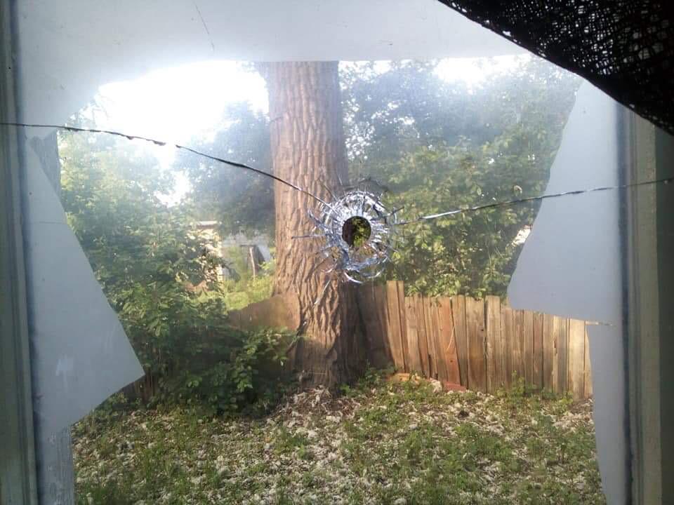 Прибыв на место, наблюдательной группой “Светлодарск” зафиксировано в двух соседних квартирах повреждения окна комнаты, смежной и внешней стены, из-за попадания пули калибром 12,7 мм.