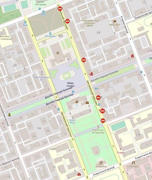 Также, днем 22 июля, в связи с проведением массовых мероприятий с 15:00 до 23:30, будет временно ограничиваться дорожное движение по проспекту Центральный (четная сторона) от ул.Гагарина до ул.Новикова и от вул.Новикова по пр-т. Ценральний (нечетная сторона) до ул.Гагарина, по пр-т Гвардейский на дорожных разворотах возле магазина "Городок" и магазина "Натуральные продукты" согласно схемы.