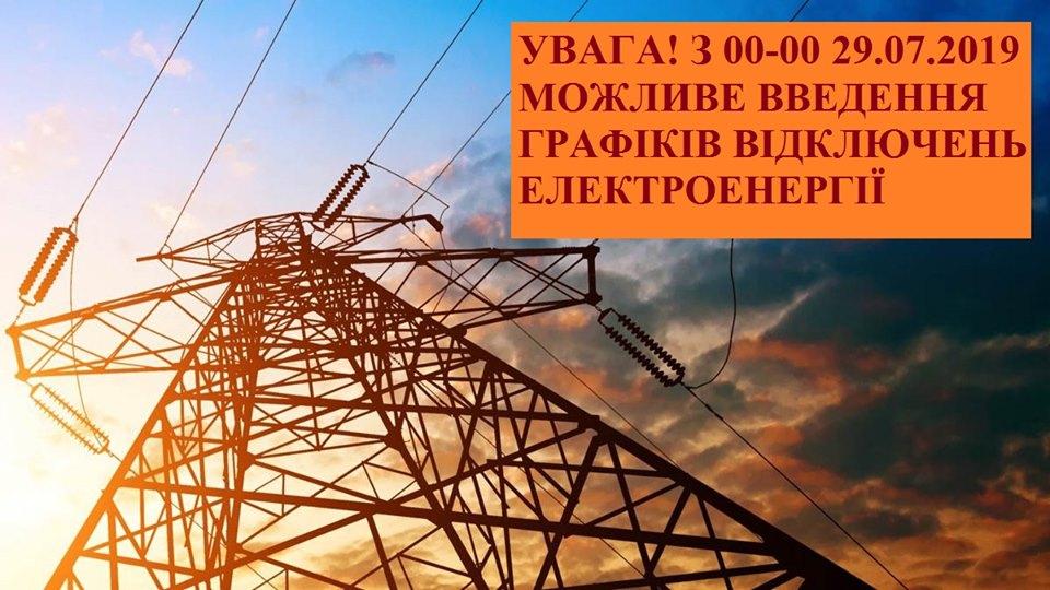 "В связи со снижением запасов твердого топлива на Луганской ТЭС до критического уровня и возможностью остановки ее генерации с 00-00 29.07.2019 согласно письма ДТЭК "ВОСТОКЭНЕРГО" от 22.07.2019 г. № 01/187 ООО "Луганское энергетическое объединение" по команде ОСП (оператора системы передачи) (РДЦ Северного региона) будет выполнять ограничения потребителей согласно утвержденных графиков ограничения потребителей на 2018-2019г".