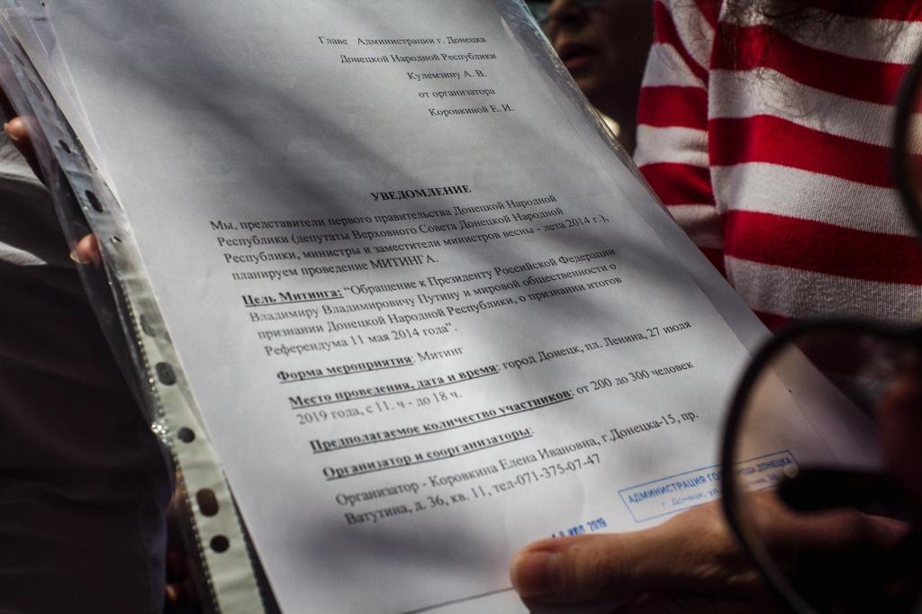 Организаторы данного действа намерены обратиться к президенту РФ Владимиру Путину и мировой общественности с просьбой признать независимость "ДНР" и итоги незаконного референдума 11 мая 2014 года.