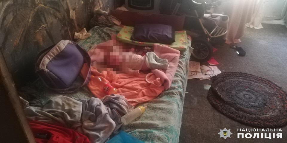 В квартире находились 4-летний мальчик и 3-месячная девочка, которая заплаканная лежала без присмотра среди грязного тряпья.