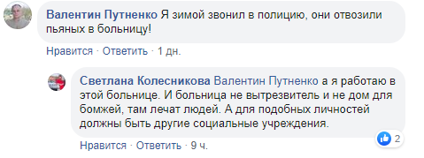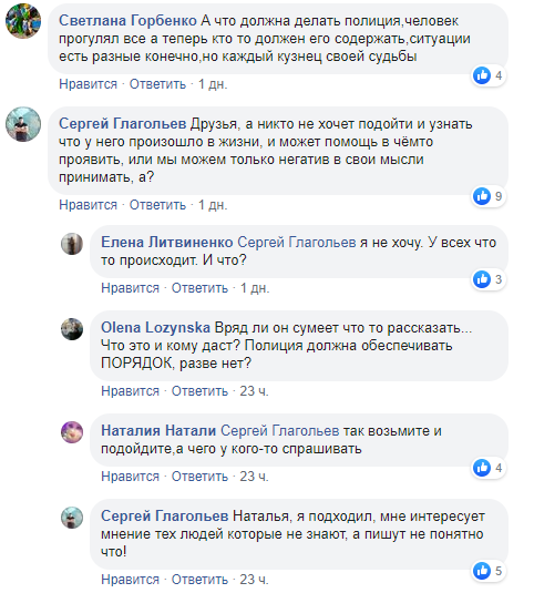 В комментариях в местной группе в Фейсбуке развернулась дискуссия. Некоторые пользователи призывают не возмущаться, а попробовать помочь обездоленному человеку. Другие же заявляют, что бездомный сам виноват в своей жизненной ситуации, и теперь своим непотребным видом портит облик города.