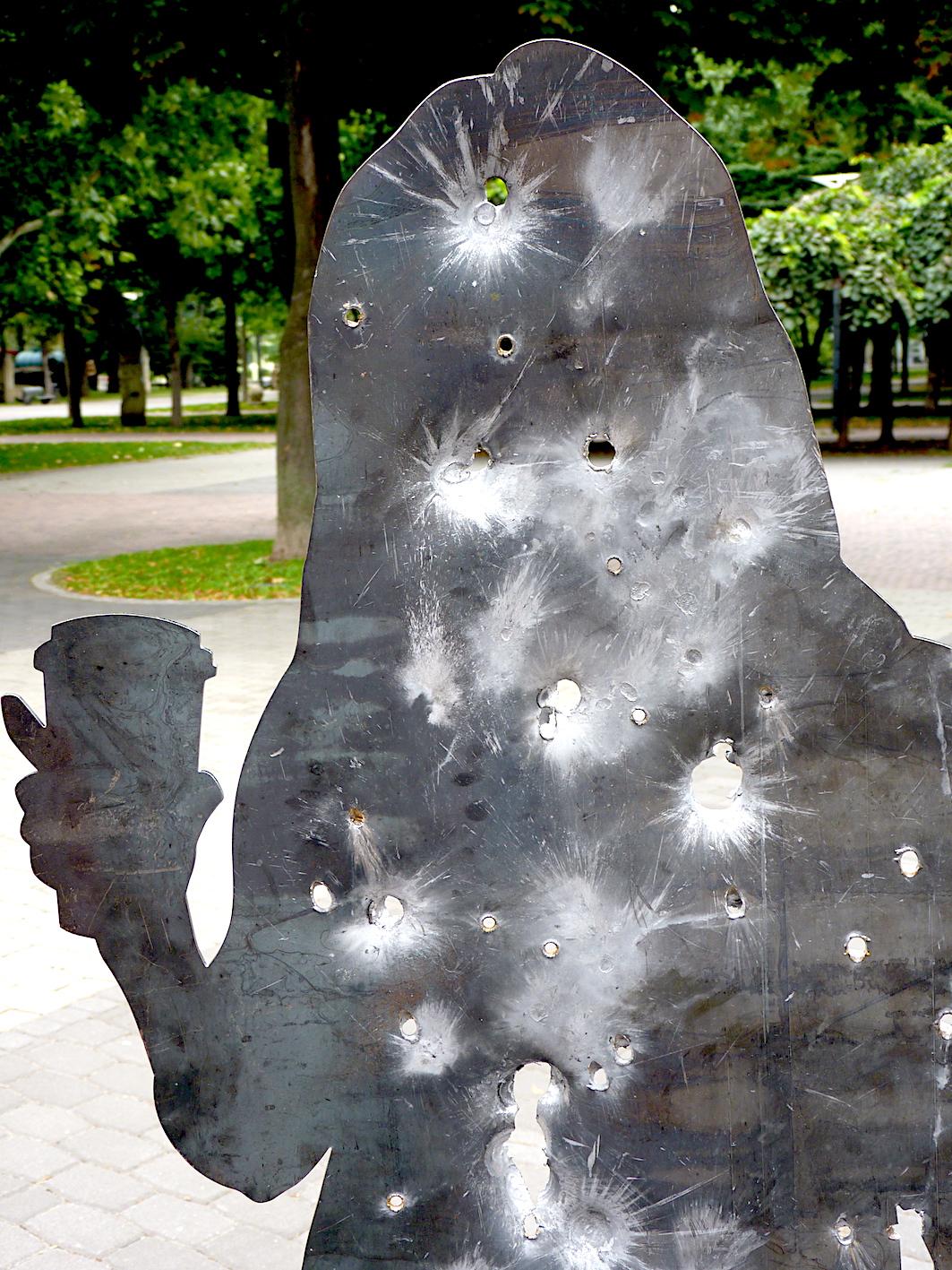 - Эти инсталляции - это простреленные силуэты обычных людей разных профессий. То есть на месте военных могли быть гражданские люди, которые живут своей обычной жизнью. Фигуры весом 20 кг каждая, изготовленные из толстого металла, они хорошо закреплены. Сейчас они серебристого цвета, а со временем будут темнеть и чернеть. И от этого еще более отчетливо будет проявляться та боль войны, которая с годами не проходит, а становится еще сильнее, то есть будет четкая память о войне, - добавил Олесь Кромпляс.