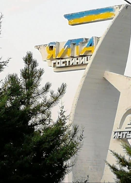 Так, 23 августа в Ялте перекрасили в сине-желтые цвета стелу гостиницы "Интурист".