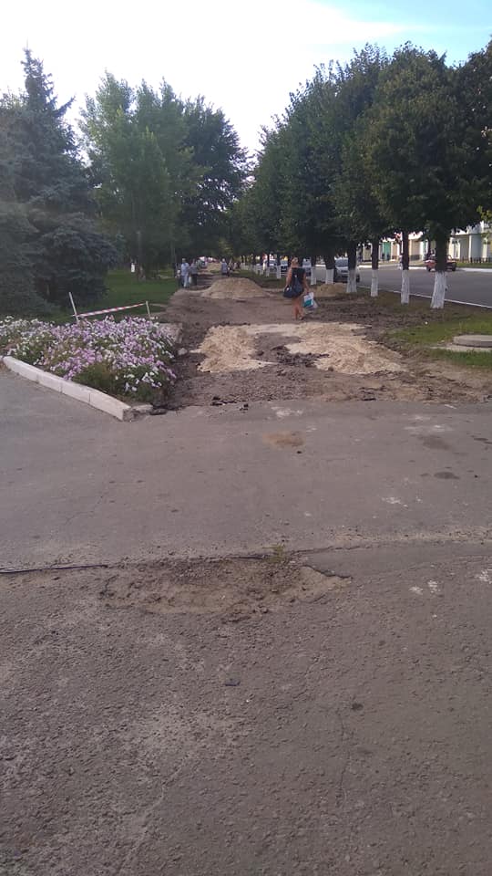 Сейчас же ситуация другая: на тротуаре снимали бордюры. Осведомленные жители Лисичанска пишут, что там будут укладывать тротуарную плитку.