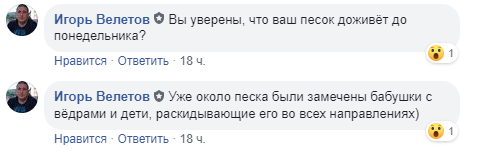 А тем временем привезенный на место работ песок понемногу растаскивают ушлые местные жители и разбрасывают дети, сообщают очевидцы.