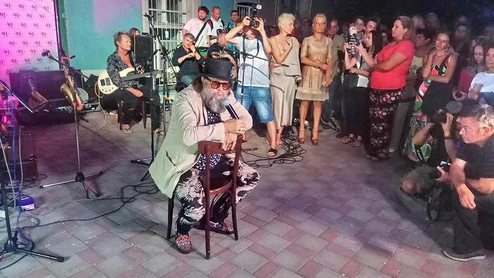 Сегодня, 31-го августа, певец и гитарист рок-группы «Аквариум» Борис Гребенщиков представил свои картины и устроил концерт под открытым небом в Одесском музее западного и восточного искусства.