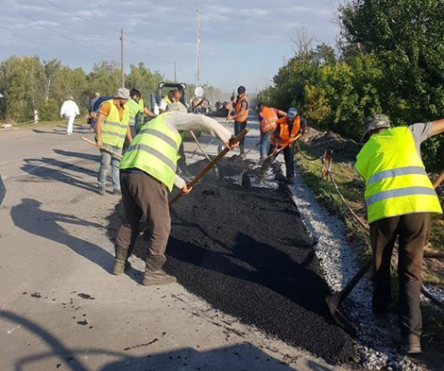 Вчера, 7 сентября, в 7:30 подрядной организацией ООО «Флангер» продолжено расширение дороги от КПВВ к разрушенному мосту. В распоряжении 24 человек были два трактора, каток и четыре самосвала. В частности, выбран лишний грунт с правой обочины, которую сразу засыпался новым щебнем. Левую обочину дороги они полностью подготовили для укладки первого слоя асфальта.