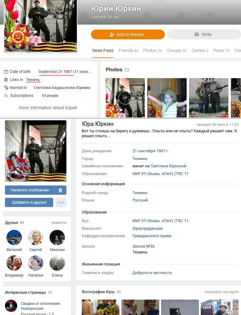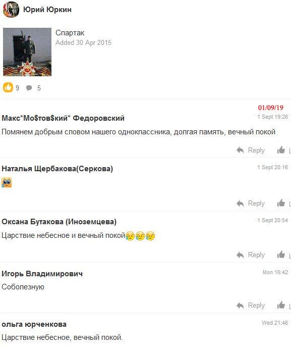 "Юркин Юрий Борисович (Тюмень, 21.09.87) стал "грузом 200" до 01.09.19 (обстоятельства смерти требуют уточнения)", — написал автор публикации в комментарии к фото боевика.