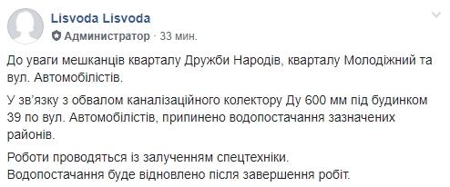 Как говорится в сообщении КП "Лисичанскводоканал", эта мера временная и вынужденная, передает Час Пик.