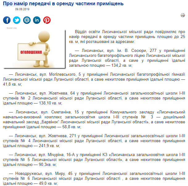 Отметим, что не так давно на сайте Лисичанского горсовета было опубликовано объявление о сдаче в аренду помещений столовых в школах города. Лисичане пишут, что ситуация связана с закрытием комбината школьного питания.