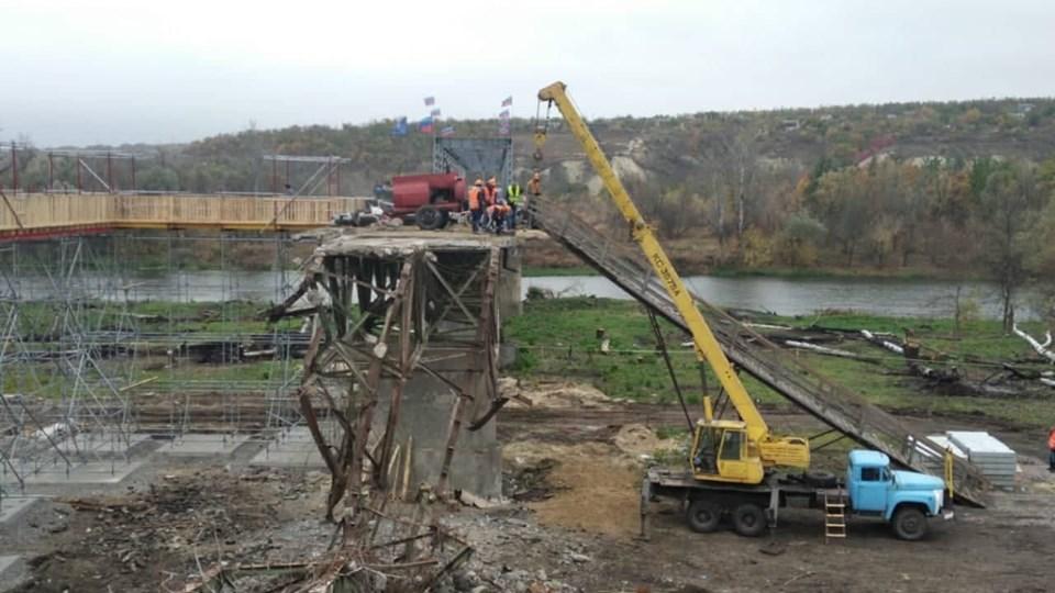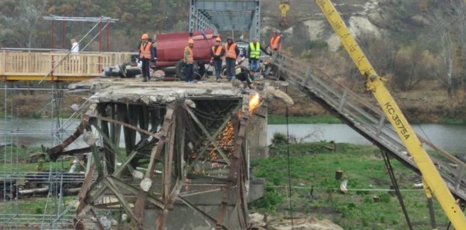 Сегодня, 6 октября, в 7:30 работники ООО «Укртрансмост» продолжили демонтаж разрушенной части моста через реку Северский Донец в Станице Луганской.