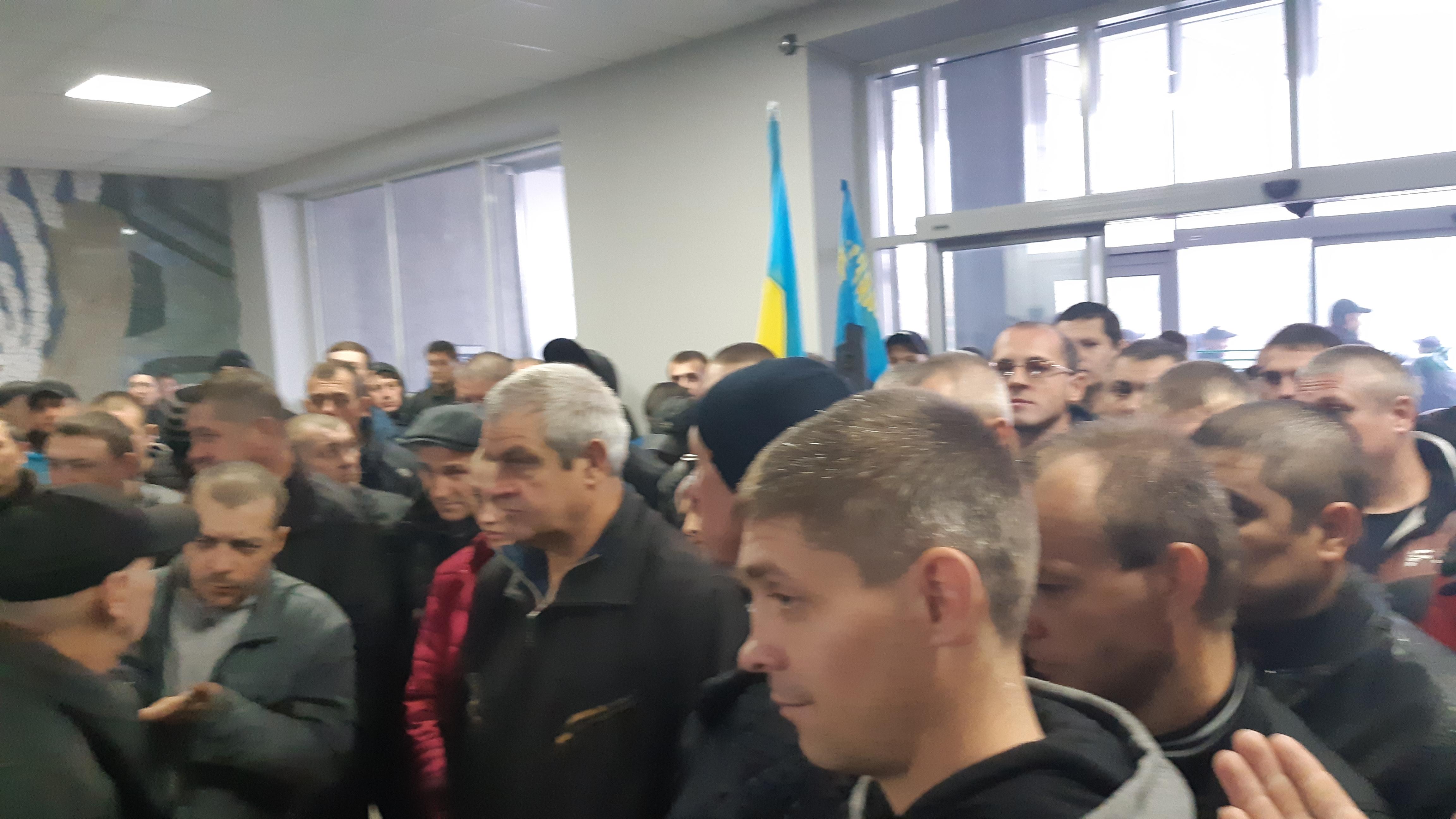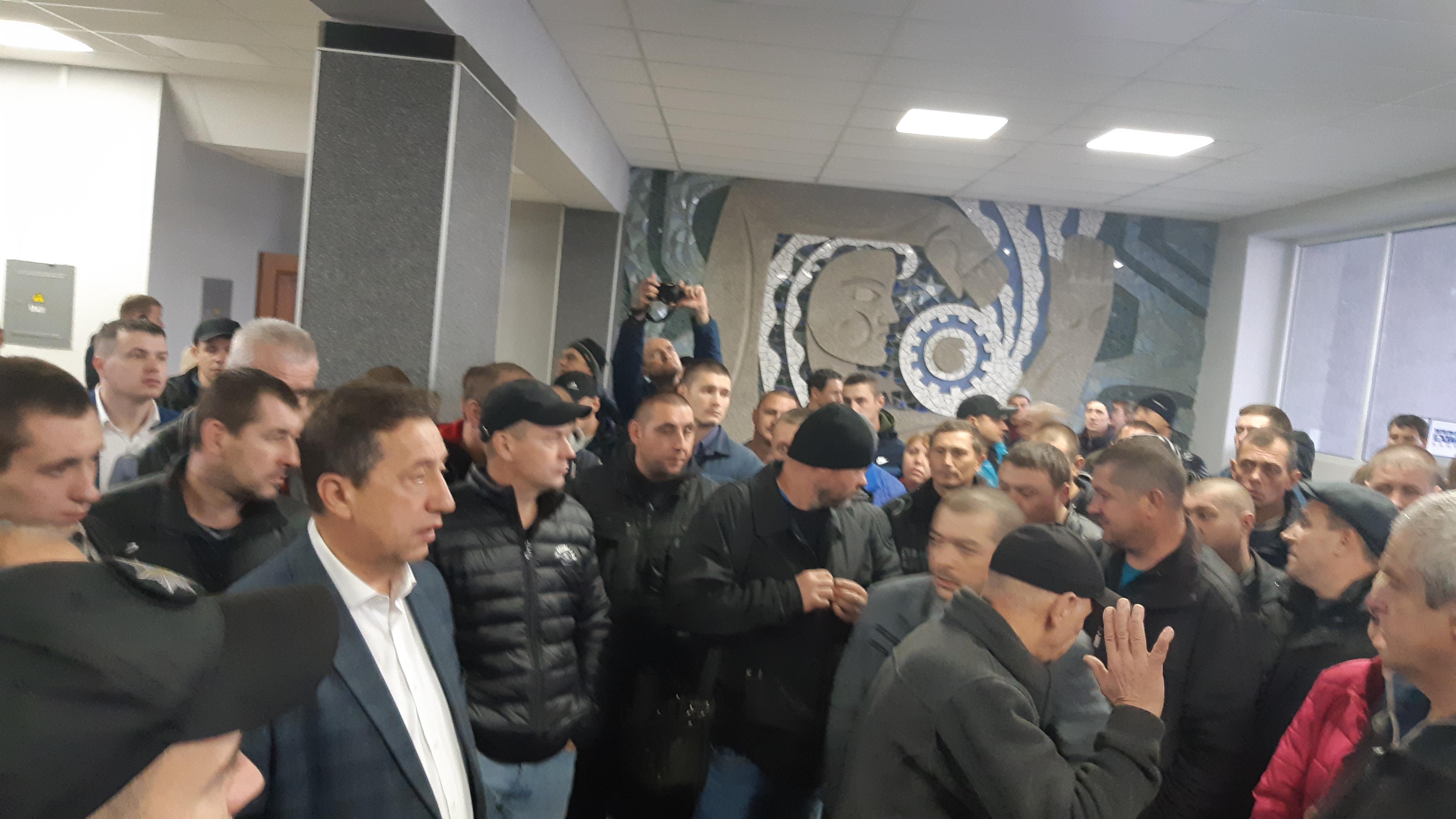 Шахтеры устроили пикет под зданием ЛОГА, после чего встретились с председателем облгосадминистрации Виталием Комарницким.