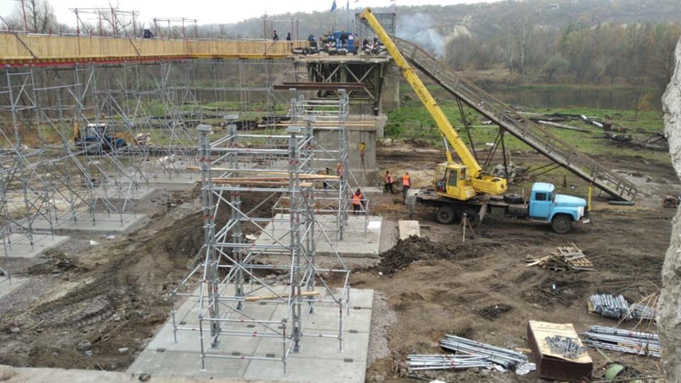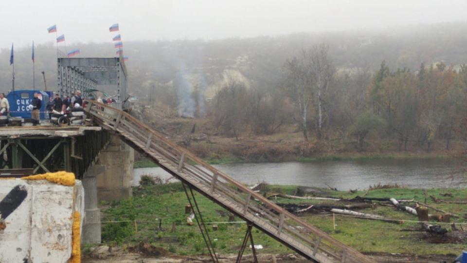 В Станице Луганской проходит монтаж третьей временной промежуточной опоры пролета восстанавливаемого моста.