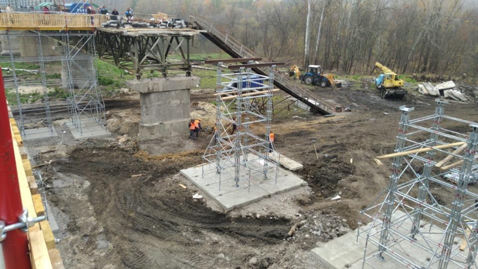 Для продолжения работ по восстановлению пролета моста прибыли десять представители ООО "Укртрансмост". К этим работам была задействована специальная техника: бортовая газель, автокран и автоподъемник.