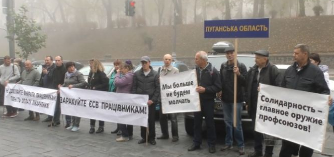 В Киеве представители Федерации профсоюзов Луганской области 24 октября пикетировали здание правительства. Среди пикетчиков были работники ЧАО "Северодонецкое объединение Азот" и шахтеры.
