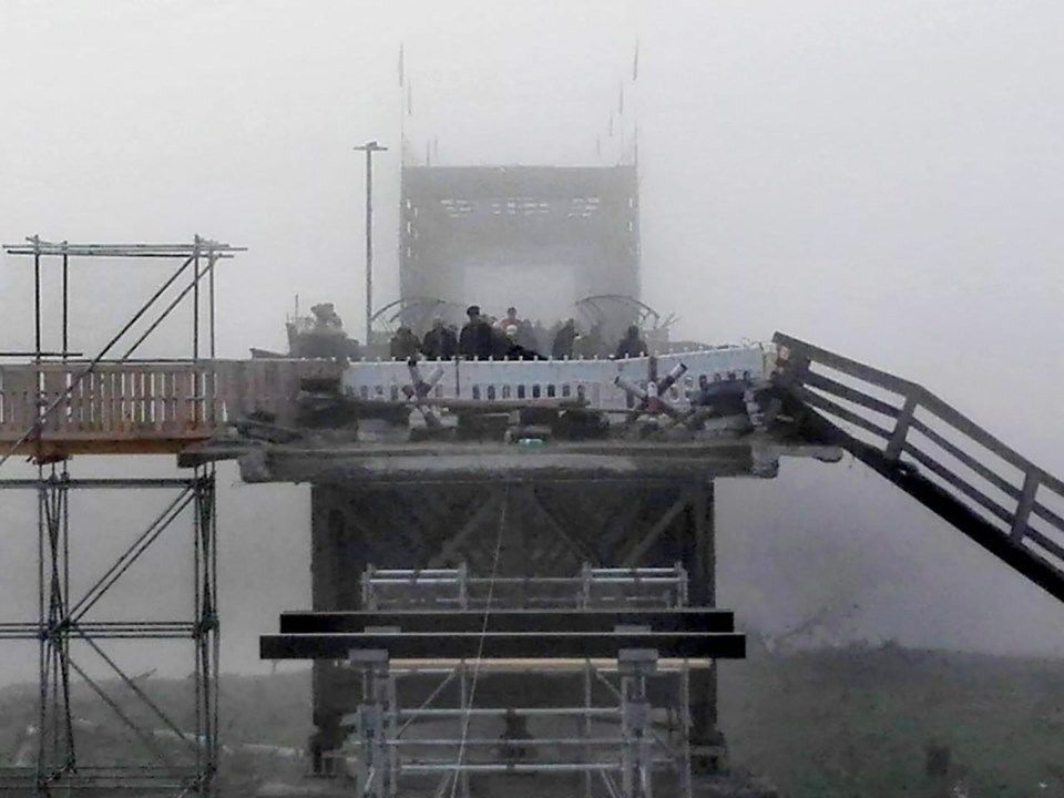 "В работах задействованы 10 человек, 1 автокран, 1 автовышка, 1 грузовой автомобиль. Ими проводился заключительный этап работы по формированию опалубки 9 опоры моста, реставрация 7 опоры, разрезание остатков разрушенной части моста. В течение дня проводилась уборка прилегающей территории возле 9-й опоры от различного мусора.
