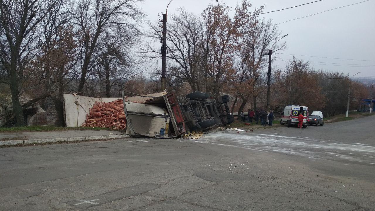 Примерно в 10 утра грузовой автомобиль, груженный костями для "Лисичанского желатинового завода", перевернулся.