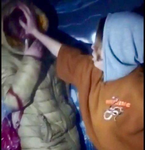 Также на видео слышны голоса парней, однако ни один из них не пытается помешать издевательству.