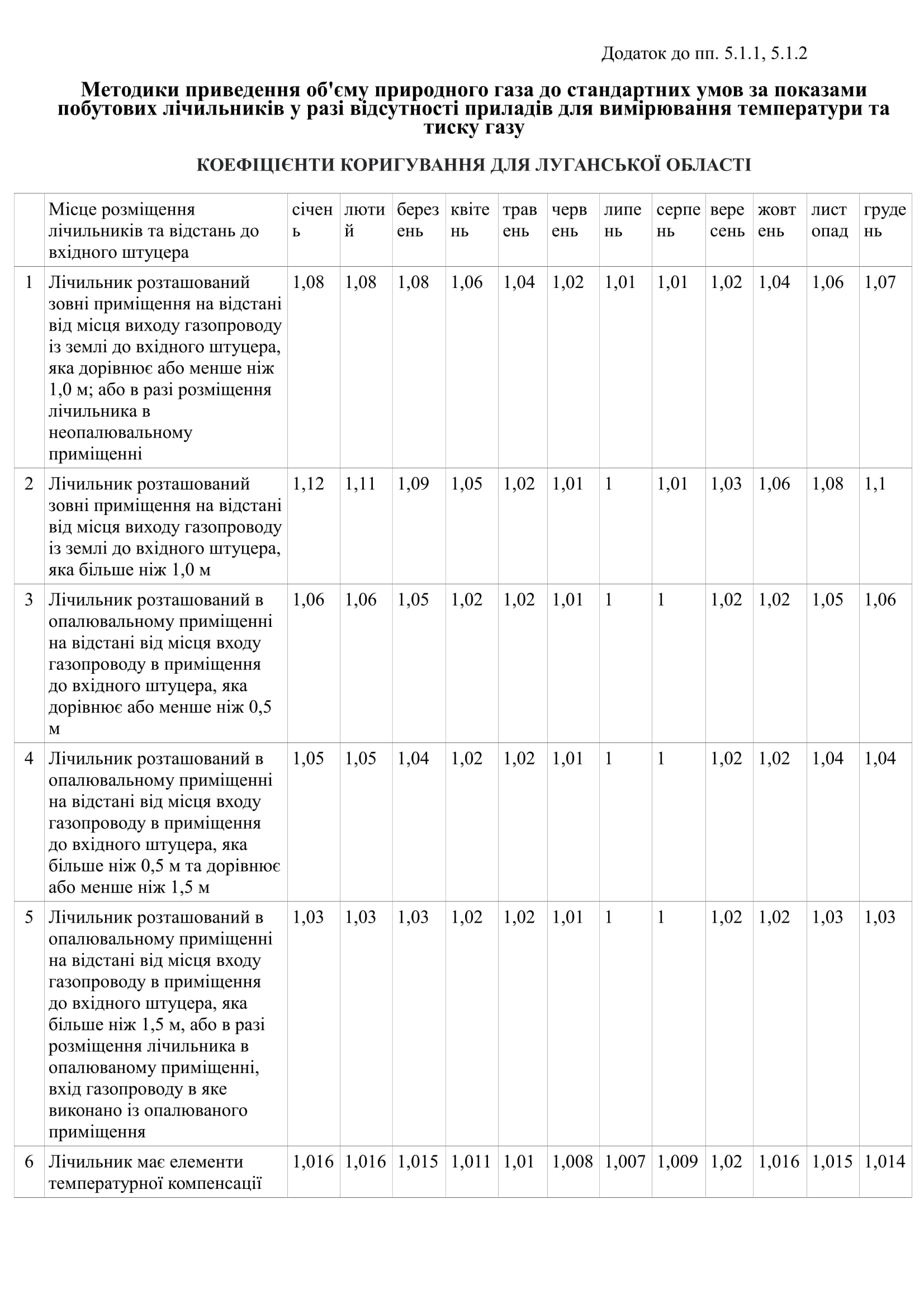 В таблице ниже представлены температурные коэффициенты для Луганской области, которые зависят от месяца и расположения счетчика.