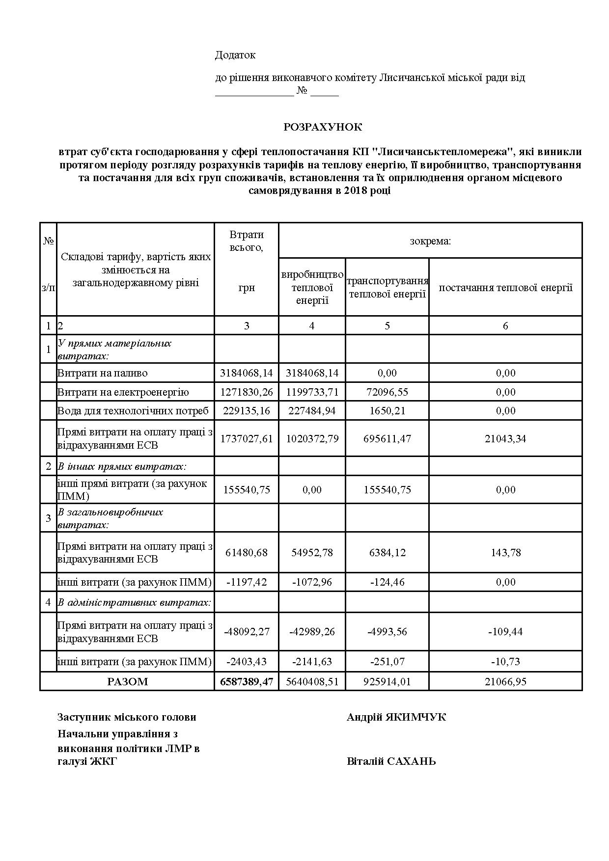 Исполнительный комитет Лисичанского городского совета должен на ближайшем заседании согласовать расчет потерь КП "Лисичансктеплосеть", которые возникли в период рассмотрения расчетов тарифов на тепловую энергию, ее производство, транспортировку и поставку, установку и их обнародование, в 2018 году. Проект решения уже опубликован на сайте горсовета.