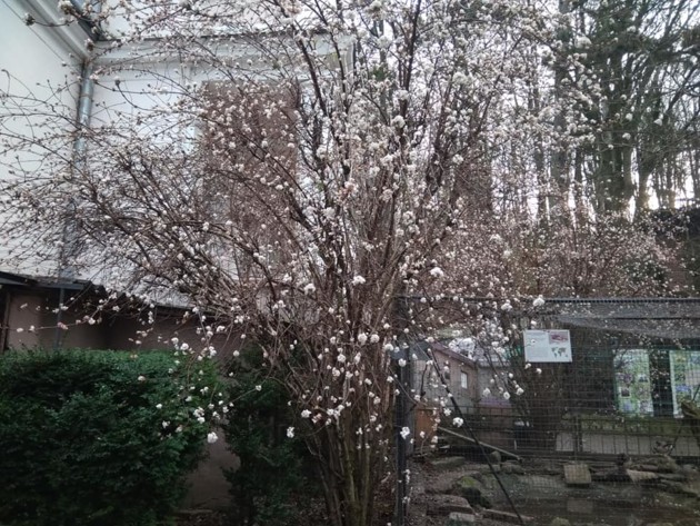 "Калина ароматная полностью расцвела. Магнолия имеет почки 2 см. Орешник пустил "серьги". Яблоки, словно свежие, висят на дереве. Весенний процесс пошел. Пчел ждут не лучшие времена", - пишут пользователи сети.