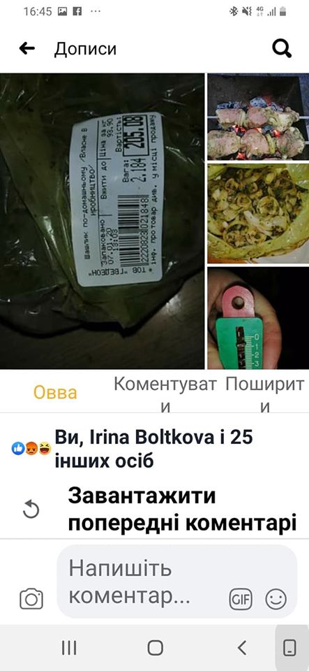 В местном паблике пользователь жалуется, что в более чем 2 килограммах готового шашлыка - около 500-600 грамм лука. Товар стоил 205 гривен (93 грн за кг).