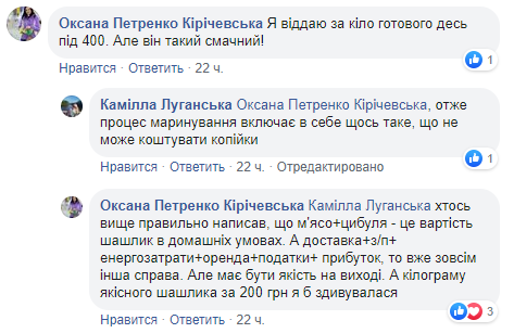 Некоторые из них не поленились посчитать составляющие стоимости шашлыка и пришли к выводу, что все экономически обоснованно.