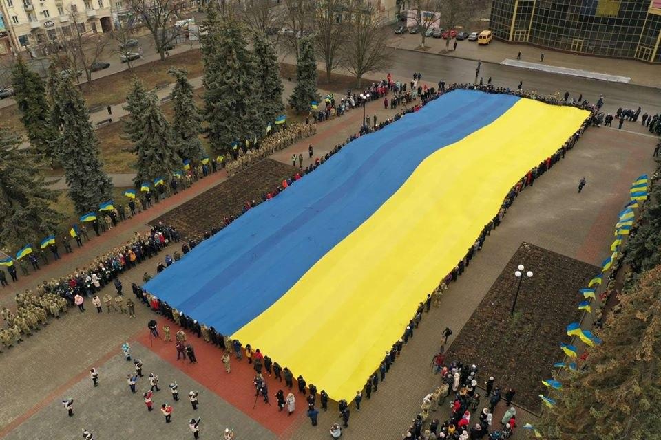 Флаг длиной 60 метров развернули в Бахмуте по случаю Дня соборности Украины.