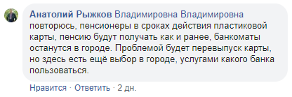 Лисичанский общественный деятель, юрист Анатолий Рыжков уверяет, что пенсионеры смогут и дальше получать пенсию через "Альфа-банк" и "Аваль": банкоматы в Лисичанске останутся, банковские карты продолжат функционировать, как и раньше. Ехать в соседний город придется разве что для перевыпуска карты.