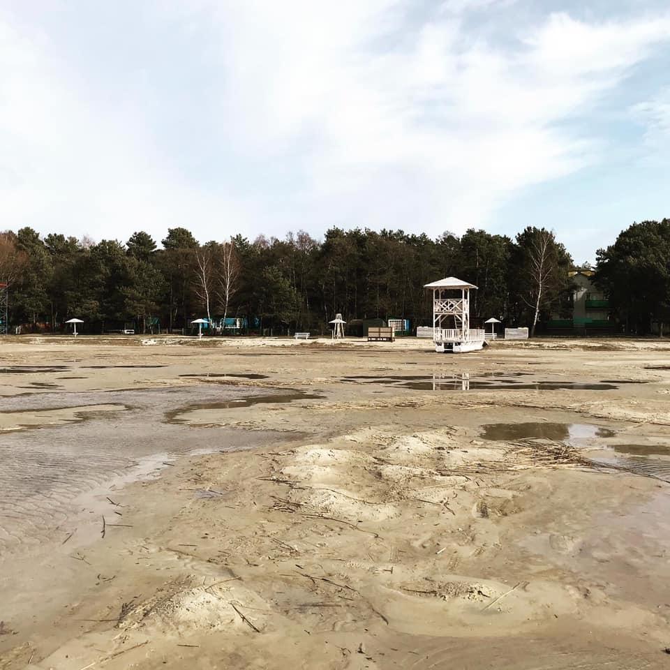 "Год назад здесь была вода. А вон там, где на фото зонтики и пирс, был берег. Побережье Свитязя теперь местами напоминает бывшее Аральское море, которое сейчас почти полностью исчезло. Вода отступила метров на 50", - написал Казанский.