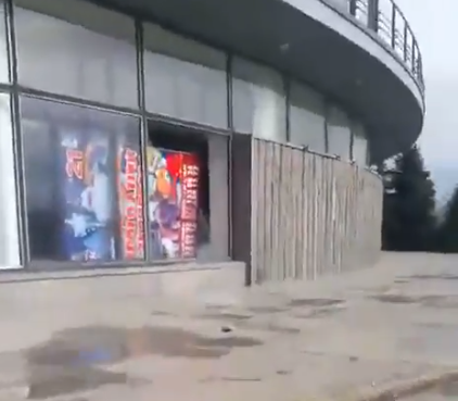 На видео женщина показывает фасад луганского цирка с выбитыми взрывной волной стеклами, и это, по словам автора, "еще цветочки", ведь внутри "повыносило к чертовой матери все".