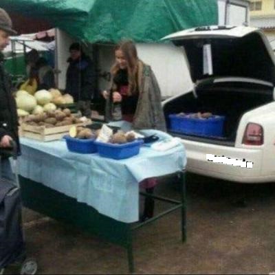 На одном из рынков Житомира произошел случай, который привел в недоумение как покупателей, так и продавцов. К "колхозным рядам" подкатил роскошный Rolls-Royce Phantom из которого начали продавать картошку.