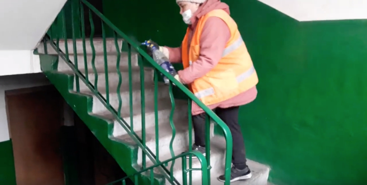 В Лисичанске проходит обработка подъездов дезинфицирующими средствами, чтобы не допустить распространение коронавируса. Коммунальщики призывают жителей города быть осторожными и соблюдать меры индивидуальной защиты.