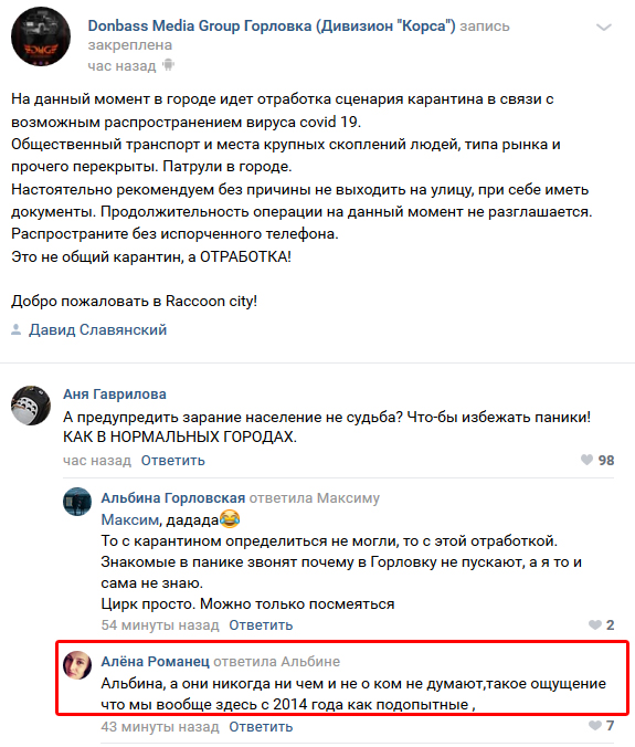 Местные же считают, что "карантин" - лишь повод в очередной раз покошмарить население. Тем более, что боевики вламываются в квартиры горловчан без масок.