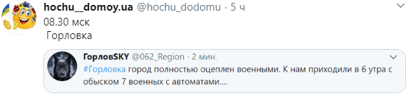 Так, стало известно, что перекрыты въезды-выезды из Горловки и Ясиноватой, перекрыты также улицы в центрах городов, рынки. На улицах много боевиков с белыми повязками на рукавах.
