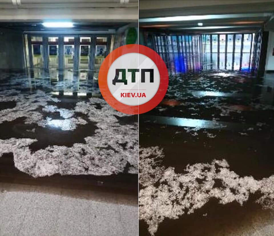 На Героев Днепра из за сильного ливня затопило ТРЦ «Оазис».