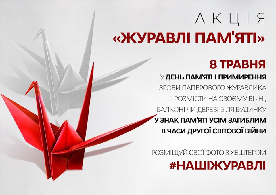 Луганская облгосадминистрация предлагает жителям области присоединиться к акции "Журавли памяти" ко Дню памяти и примирения.